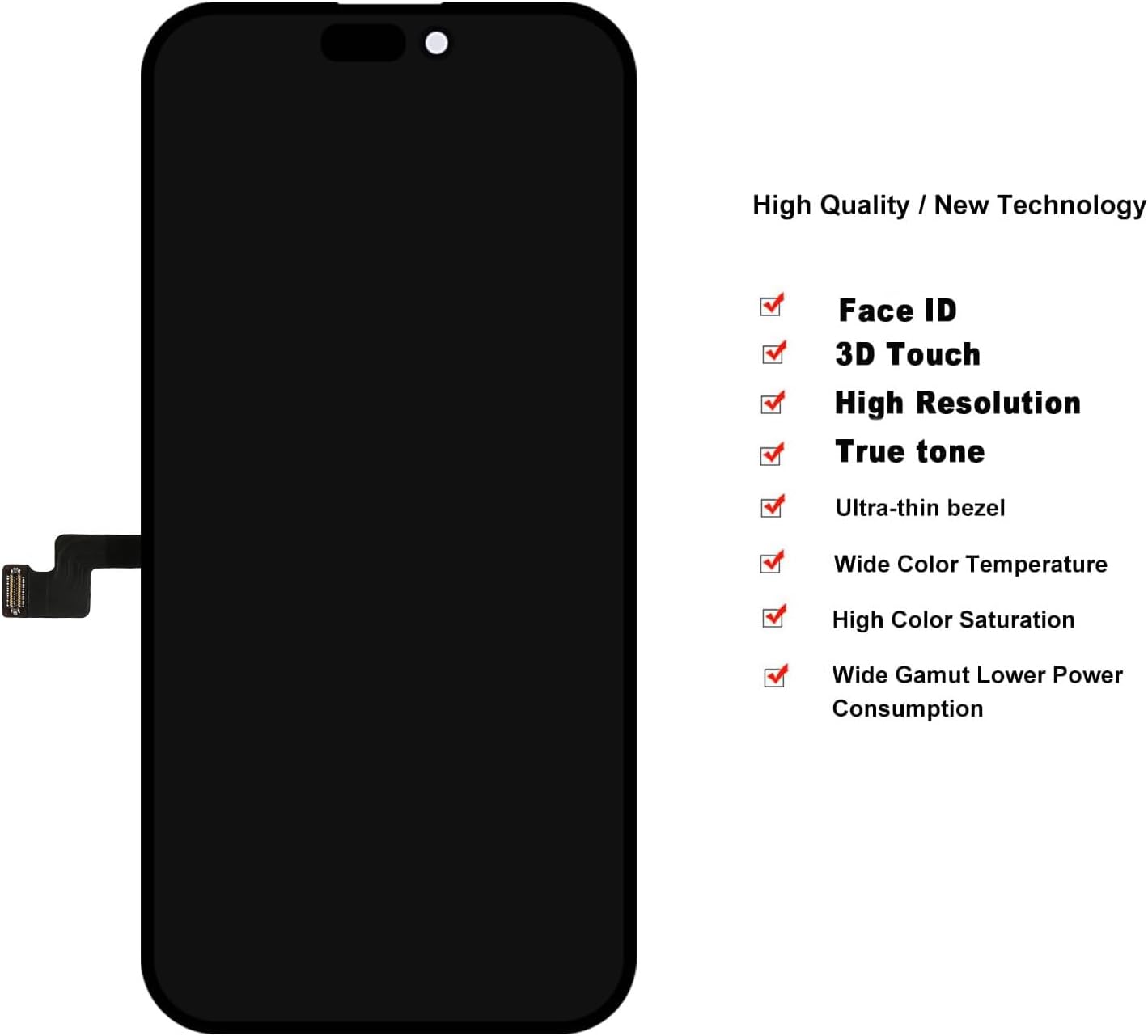 iPhone 16 Screen Replacement, 6.1 inch FHD LCD Display and Touch Digitizer Screen, True Tone Programmable, Face ID Remains (for A3287, A3081, A3286, A3288)